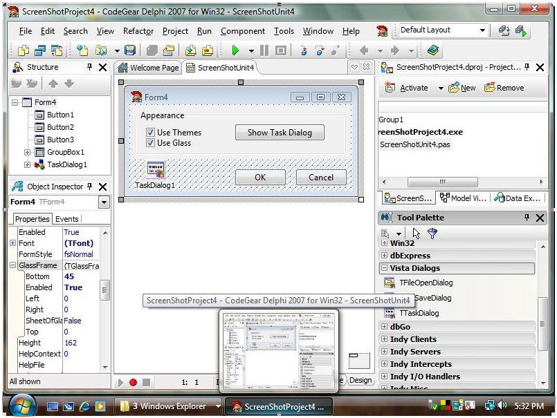 Update 3 fixes several Delphi problems as well as several C++ problems, including improvements to the documentation. The update can be applied to both Delphi and C++Builder 2007. Similar to update 1, the update will uninstall your old IDE version and reinstall the new version (which can be quite slow), though your settings and components should survive the upgrade process, since the IDE registry entries are not cleared. The recommended way to upgrade is using the "Check For Updates" start menu item, but you can also download the full update using the link below. Also, you can use that download for installing Delphi from scratch, it's a full installer that contains everything. The build number for Delphi 2007 Update 3 is 11.0.2804.9245.